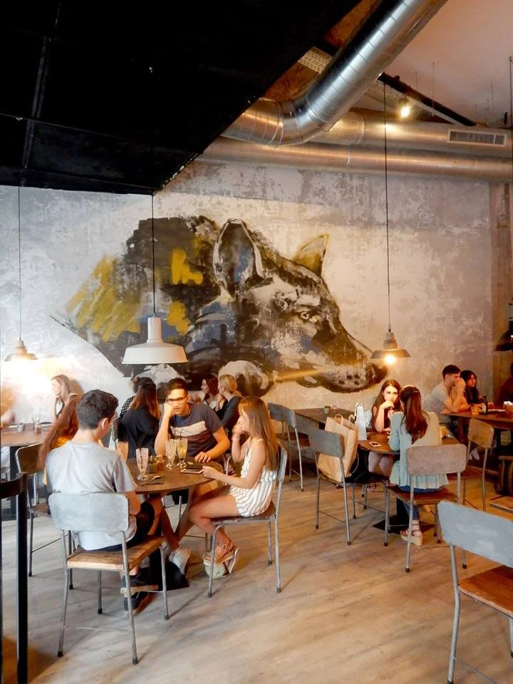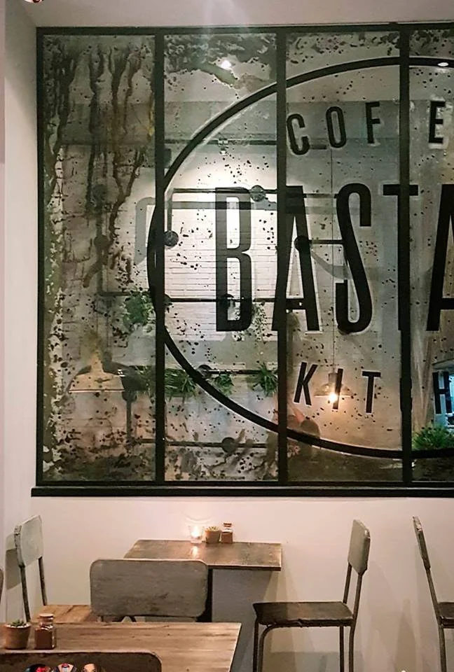 Creamos para Bastard Coffe & Kitchen un mural, espejos envejecidos, y todo un envejecido en sus paredes, en la linea de los anteriores proyectos con Ghost signs