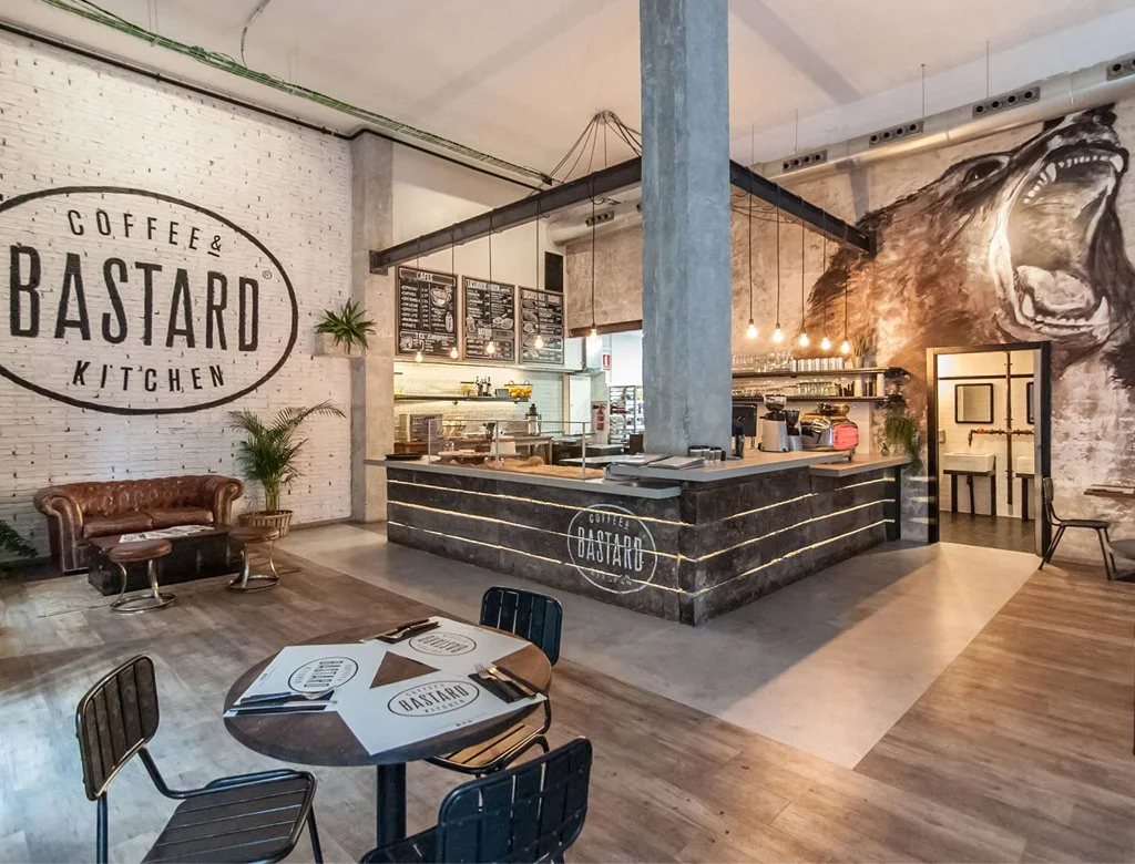 Bastard cafeterias en valencia: espejos, rotulaciones y murales