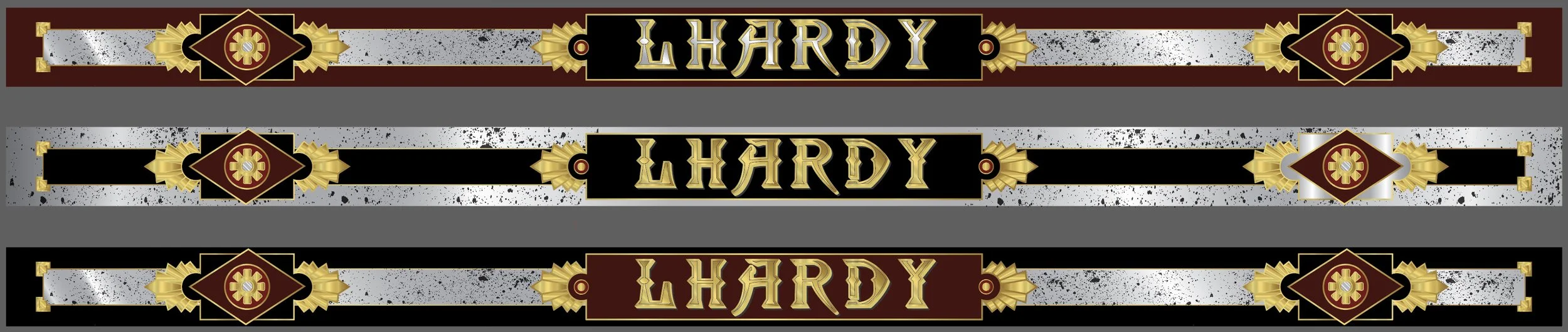 Dimos a elegir al cliente varias opciones de combinación de colores, jugando con el rojo, negro, dorado y plata envejecida.