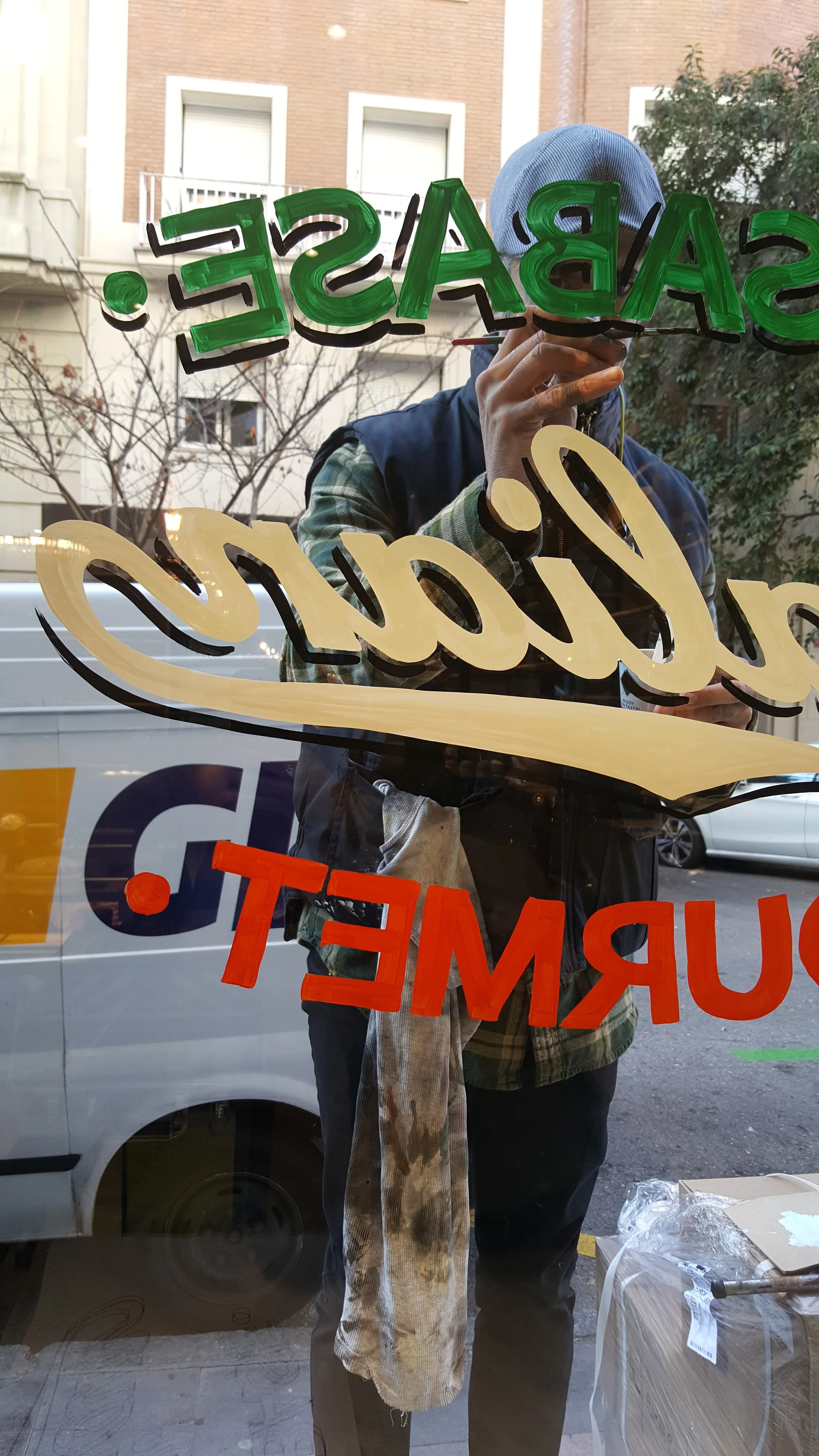 Me encanta como se ven los trazos en las ventanas cuando la luz incide por detrás, las pinceladas que te cuentan cómo se pintaron esas letras.